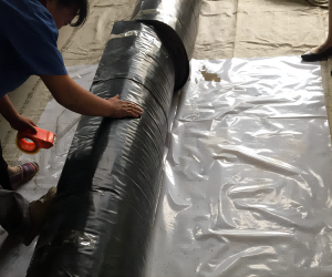 覆膜型膨润土防水毯GCL-OF产品在普通钠基膨润土防水毯上粘合HDPE膜,使膨润土垫不仅具有膨润土防水毯抗刺穿性能,同时也具有土工膜的抗渗性能,产品可单独使用在隧道,地下室,屋顶,粮库等要求更高的防渗系统中,大量的施工案列可以证明该产品相比传统的防水板等卷材类产品,不仅能防渗还能吸湿,使用寿命也更长。